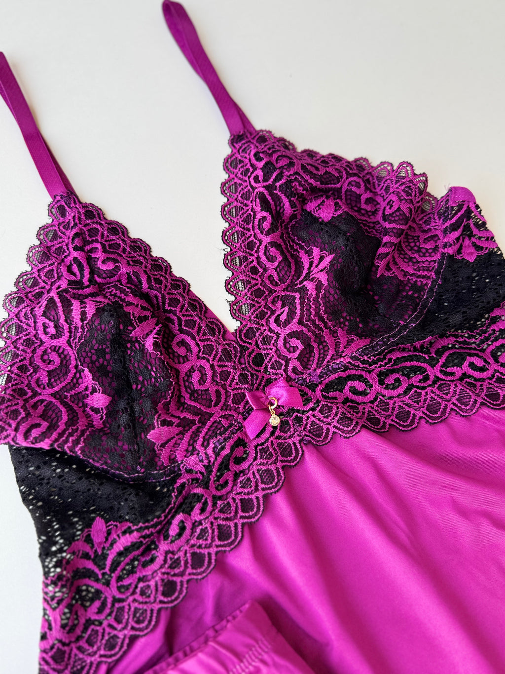 Pigiama corto realizzato in tessuto leggero e morbido, ideale per notti più confortevoli. La canotta presenta delicati dettagli in pizzo sul seno, che valorizzano la finitura del capo, oltre a spalline regolabili per una migliore vestibilità.