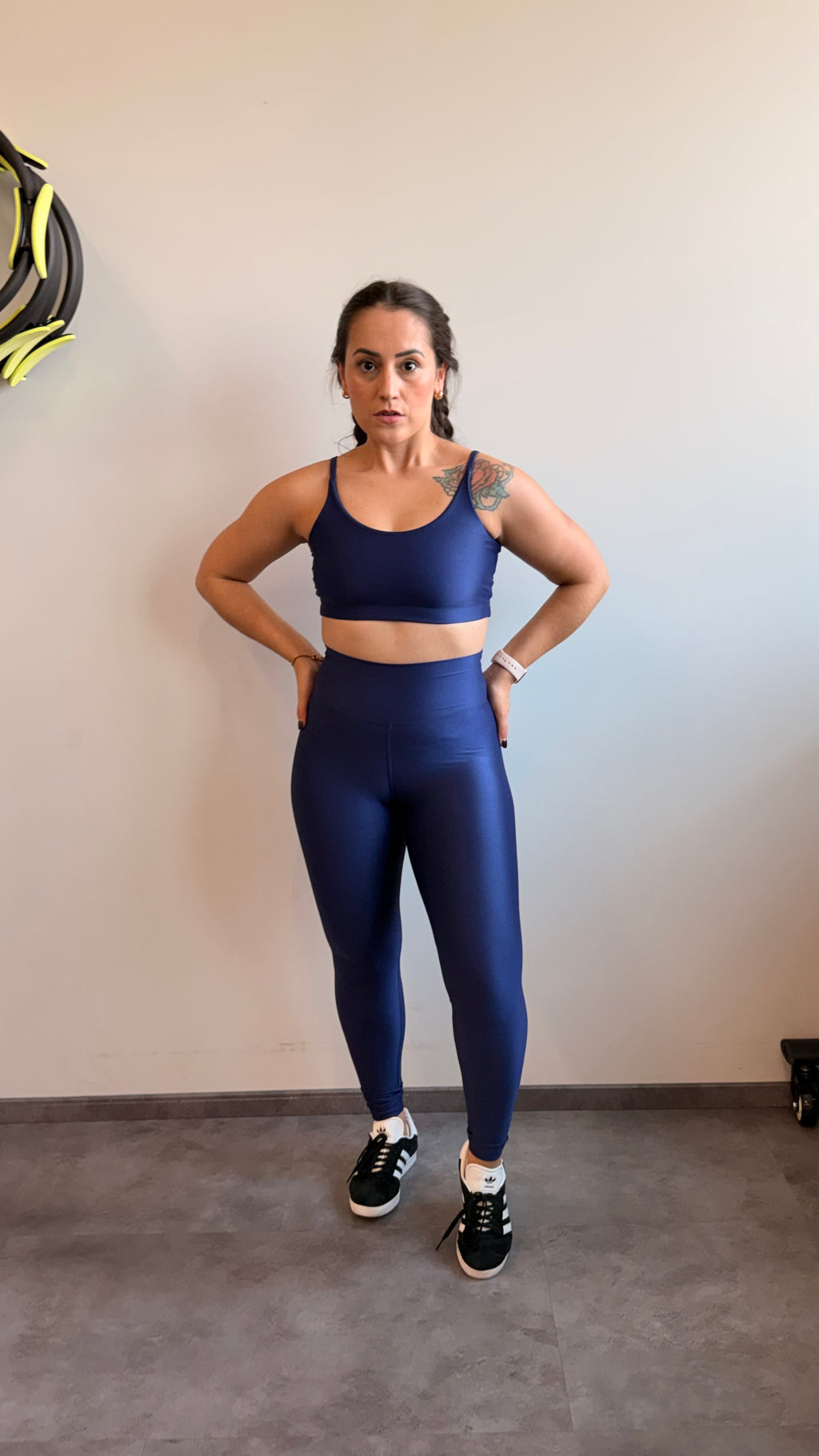 Il top presenta un design asimmetrico, moderno e sofisticato, che valorizza il décolleté e garantisce un sostegno moderato, perfetto sia per l’allenamento che per creare look casual. I leggings a vita alta modellano la silhouette, assicurano stabilità durante i movimenti e includono dettagli strategici che esaltano le linee del corpo, unendo estetica e prestazioni.